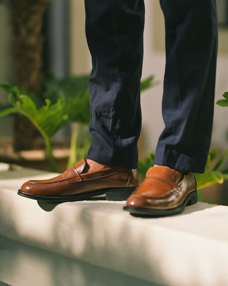 Loafer camel en cuir pleine fleur, patine main, confort 12 h.